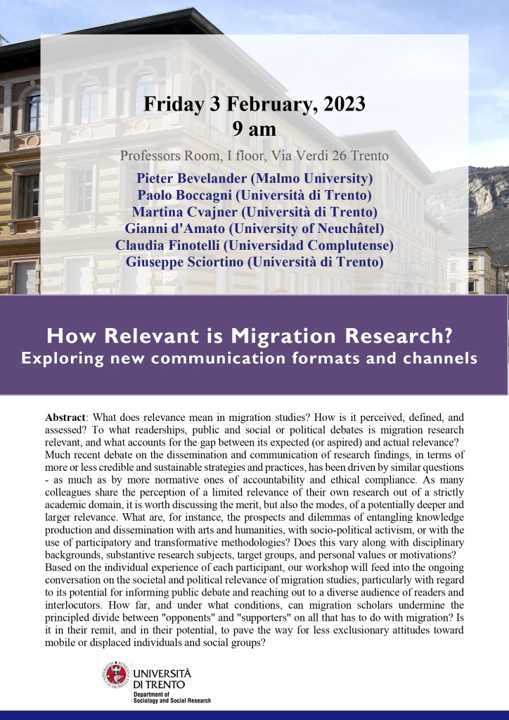 Quale “rilevanza” hanno gli studi sulla migrazione? Come viene percepito, definito e valutato il fenomeno migratorio? Per chi, nel dibattito pubblico, politico e sociale è rilevante la ricerca sulla migrazione e cosa spiega il divario tra la rilevanza che ci si aspetta abbia (o che si aspira ad avere) e quella effettiva?