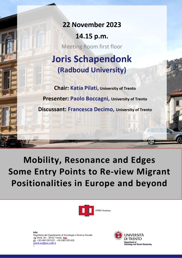 In this contribution, I work around three concepts that help us to unfreeze migrant positionalities in Europe, and beyond: mobility, resonance and mobility edges. Based on a critical trajectory approach, that is designed to follow the (un)expected twists and turns of im/mobility processes, I argue how a mobility lens helps to produce knowledge that moves beyond policy-centric conceptions of migration.