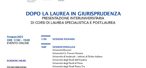 Anche quest’anno, parteciperemo all’iniziativa “Dopo la Laurea in Giurisprudenza. Presentazione interuniversitaria di corsi di laurea specialistica e post-laurea” promossa dall’Università Bocconi. L’evento, che si terrà